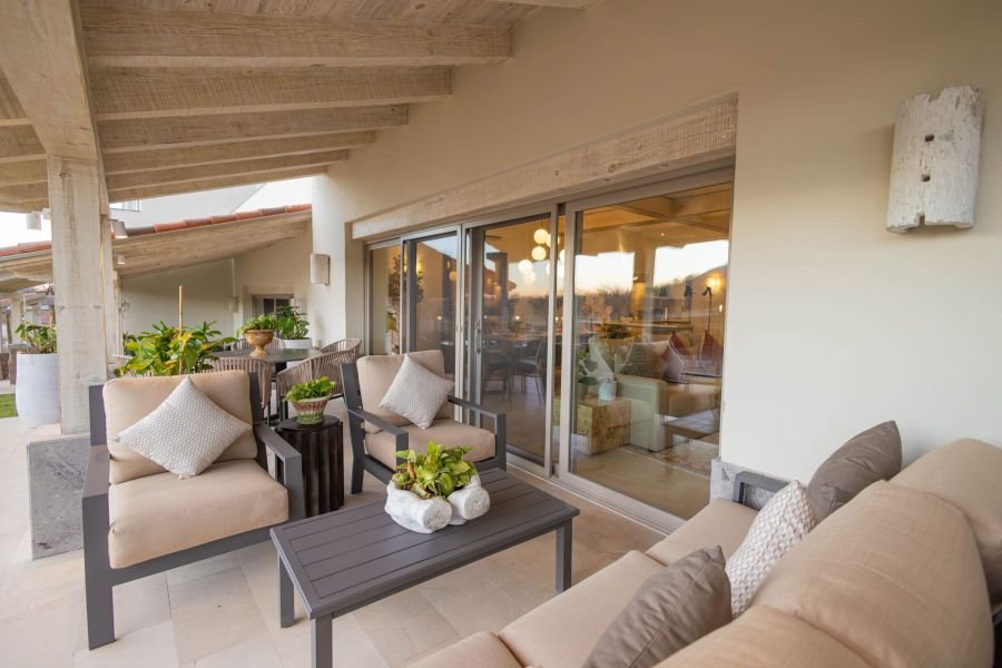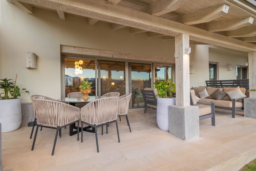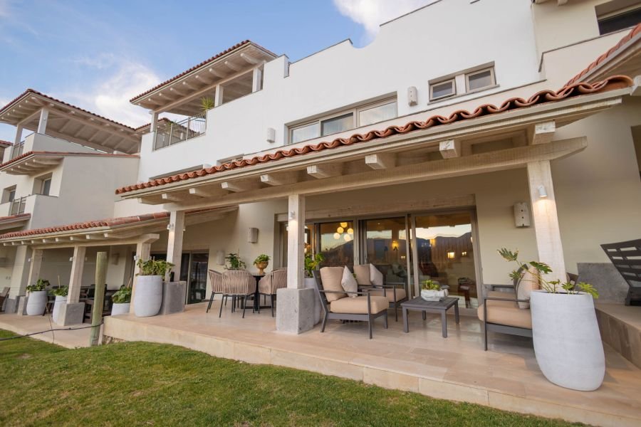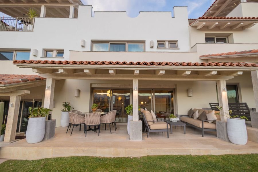Sumérgete en la tranquilidad al entrar en nuestro townhouse, donde las comodidades modernas se combinan a la perfección con el encanto rústico. La planta baja te da la bienvenida con una acogedora sala de estar, una cocina totalmente equipada con todo lo esencial para tus aventuras culinarias y un comedor con abundante luz natural. En la planta superior, te esperan tres acogedores dormitorios, cada uno con ropa de cama de lujo y amplio espacio de almacenamiento. Lo más destacado de la propiedad es su terraza privada, donde podrás relajarte con una copa de vino.